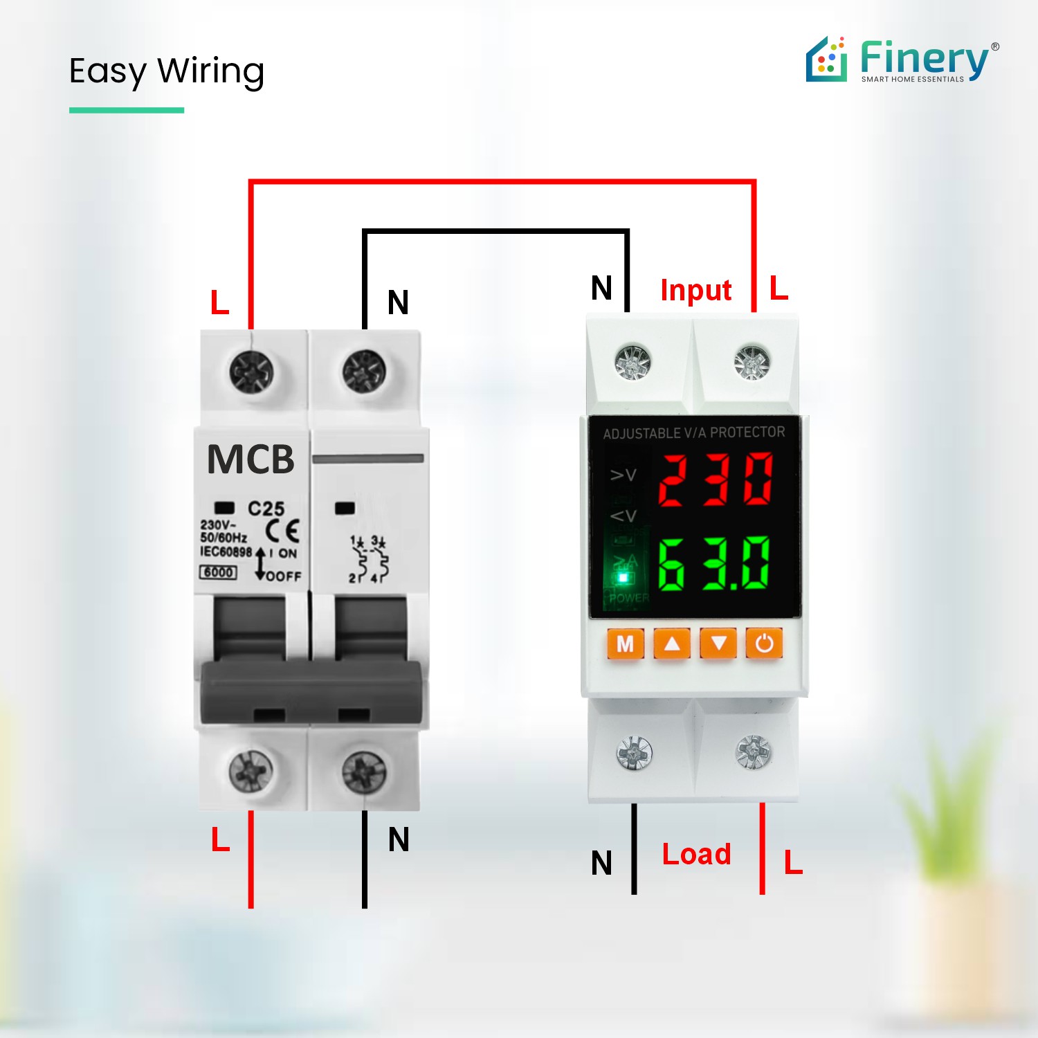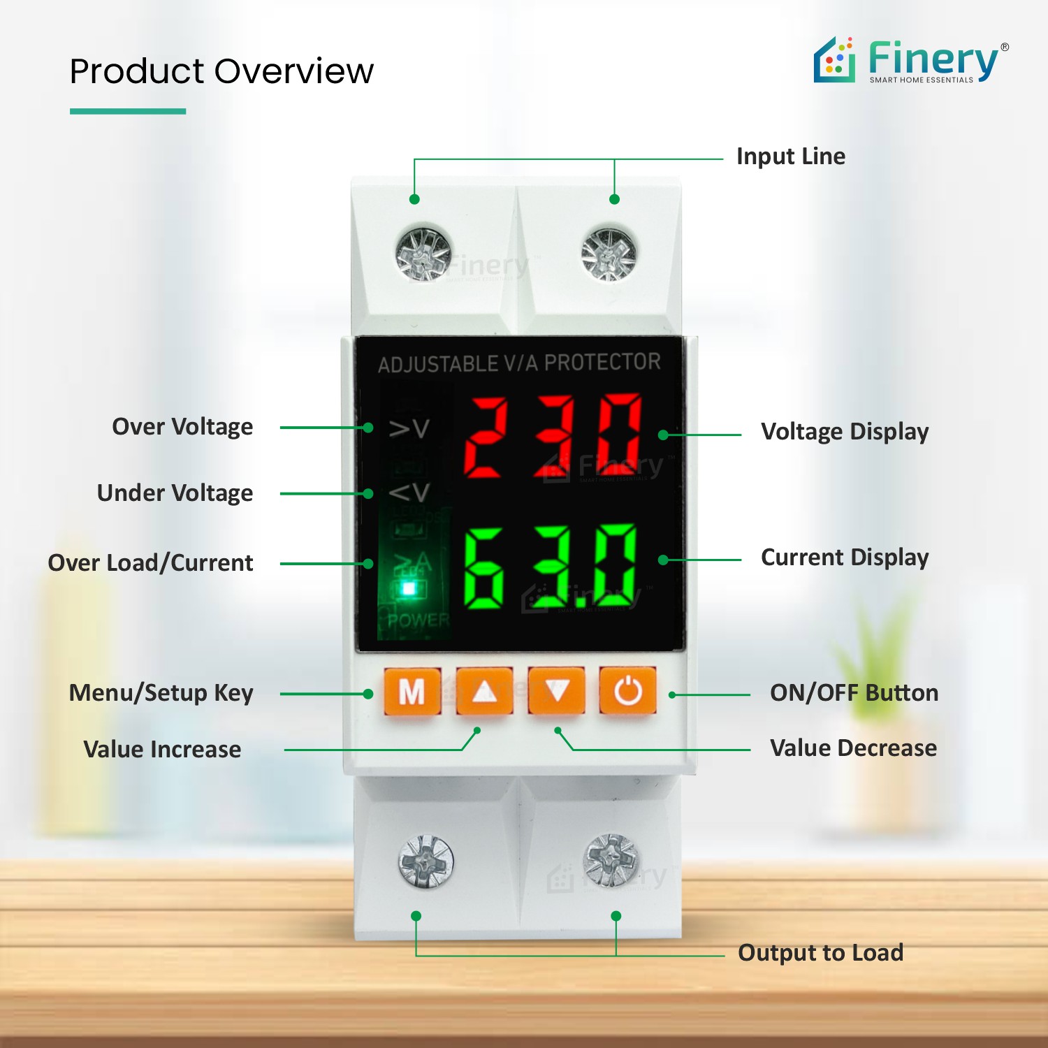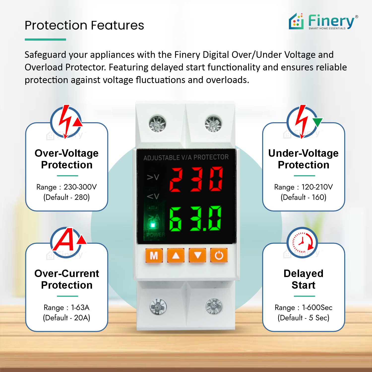 Finery Non-WiFi 63A Digital Over/Under Voltage and Overload Protector Delayed Start