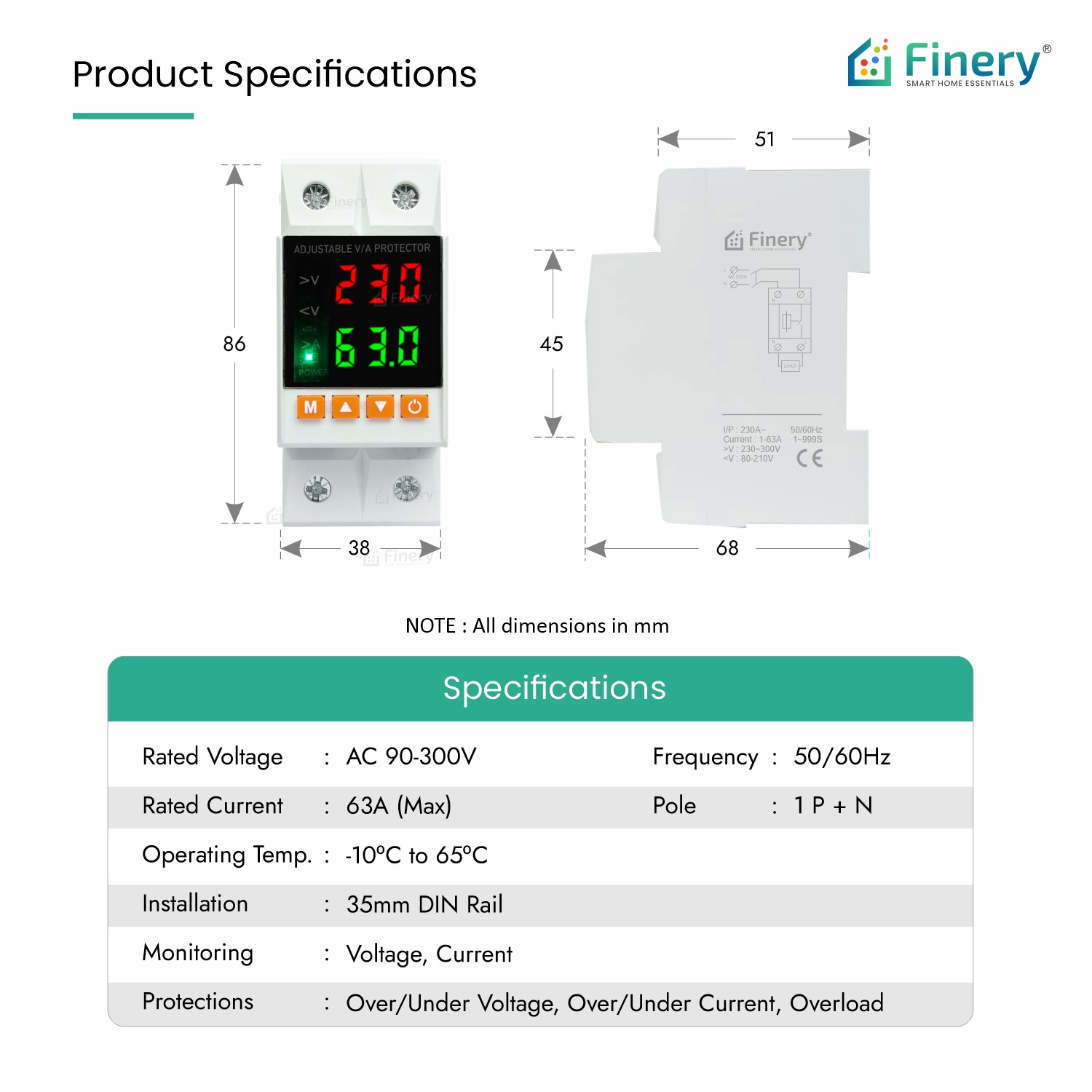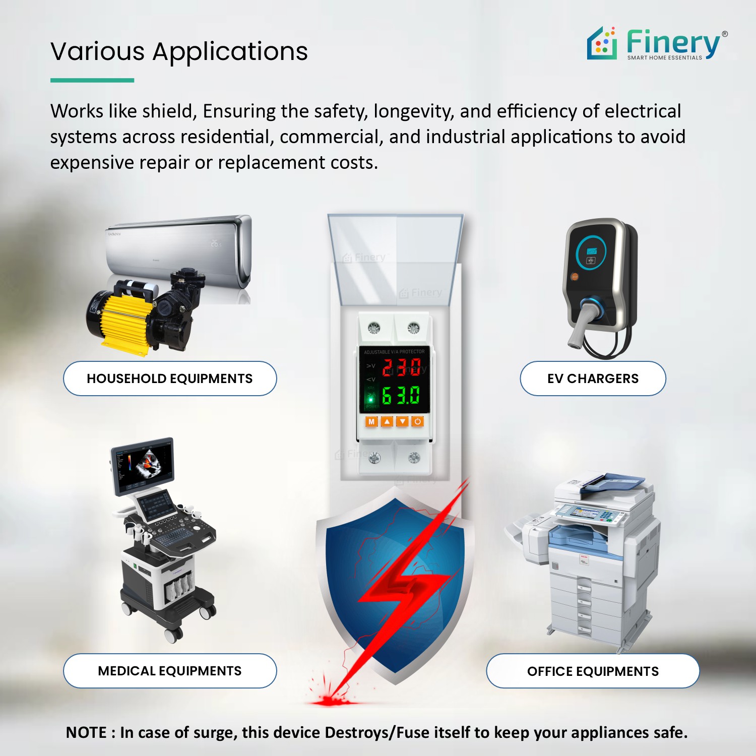 - EV CHARGER CAPABILITY : Designed to handle high loads up to 63A to protect your EV charges for voltage fluctuations, making it ideal for use with electric vehicle (EV) chargers and other heavy-duty appliances.